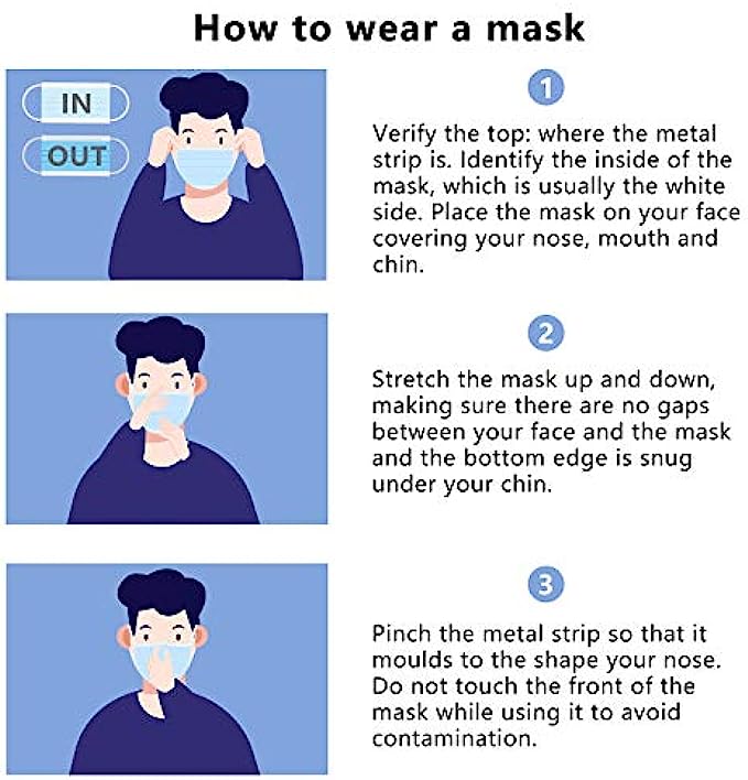 non-woven Masks made of 3 layers of high-quality non-woven fabric which is more breathable Our disposable face masks are suitable for adults and teenagers These face masks can be used for daily protection, but should not be used in surgical or high risk situations 100 pieces Great for dust-free workshops, schools, catering services, food processing, environmental cleaning, production workshop, public occasions, etc.