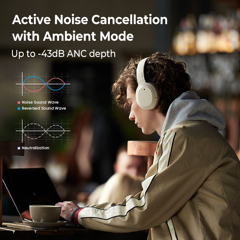 Edifier W820NB/W820NB PLUS Wireless Headphone Bluetooth V5.0 Noise Cancelling Headphones Hi-Res Audio 40mm Type-C Fast Charge Hybrid ANC ENC LDAC Ambient Sound Noise Cancellation headphone with mic