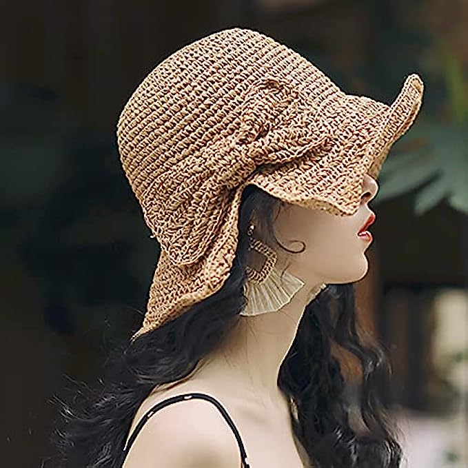 Straw 拉绳 closure Hand Wash Only 【ADJUSTABLE STRAW SUN HAT】- Features with wicking sweat band to keep you cool and comfortable, prevent the sweat dripping in your eyes.Ribbon inside the sun hat can be adjusted for different head size,from small head size to large head size around 22.05-22.83 inches. 【USABLE】- Perfect to use as a beach hat for holidays or as a daily headwear, is very wearable with anything like dress, bikini or shorts for women lady teenagers girls. This sun hat is perfect for camping, hiking, gardening, traveling, fishing, boating, hunting, safari, beach, pool or any other outdoor sport activity. 【Big Wide Brim Beach Hat】- This Beach Straw Hat offer high UV UPF sun protection with full brim, sun blocker function.Wide Brim 4 inches helps to keep both of your head and neck from scorching sun.