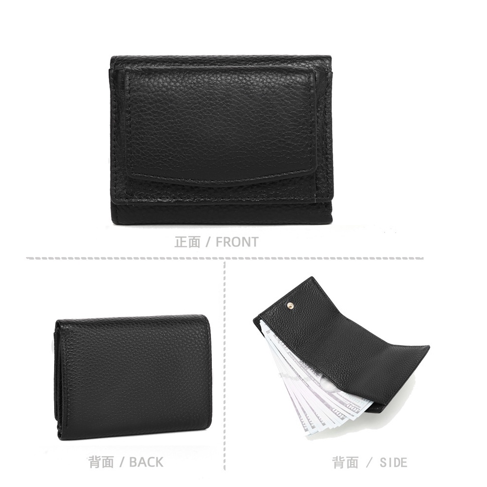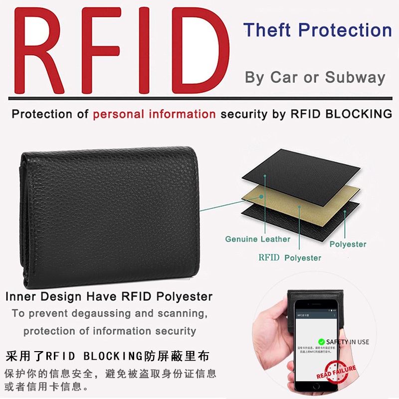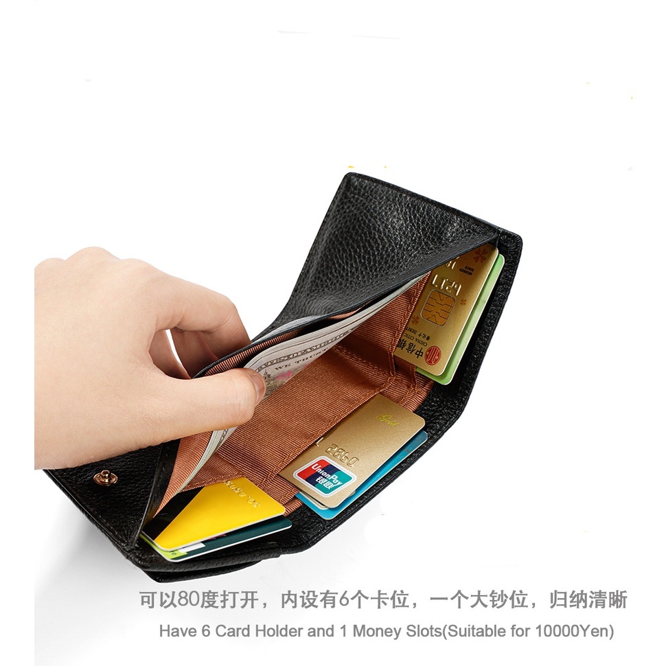 GENODERN RFID Blocking Women's Wallet Genuine Leather Lady Purses Short Japanese-Style Multiple Card Slots Coin Purse Tri-Fold Wallet