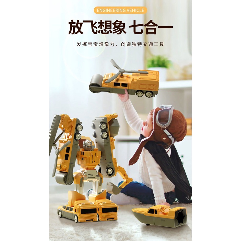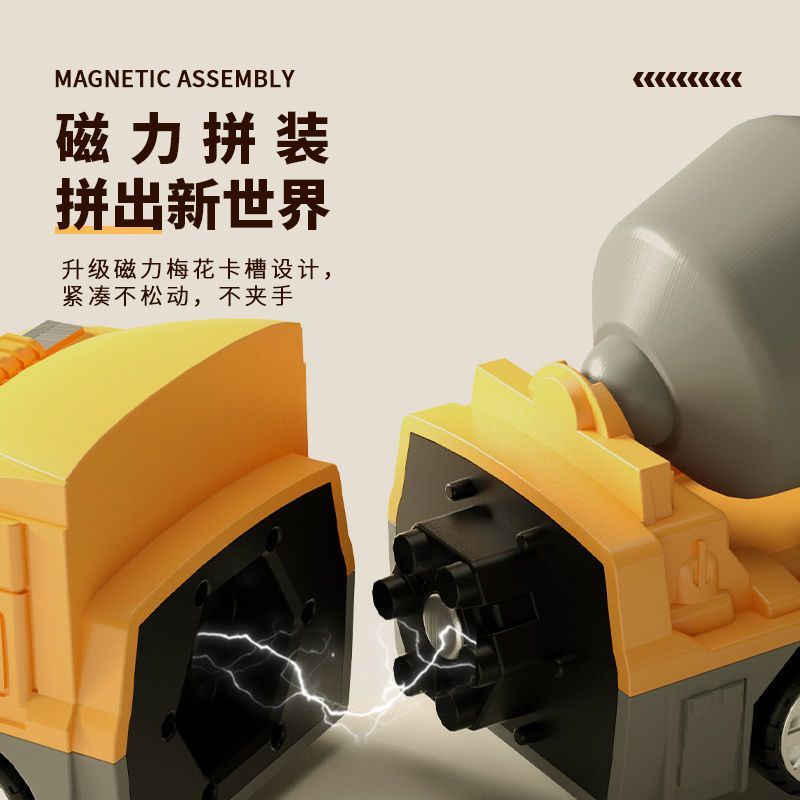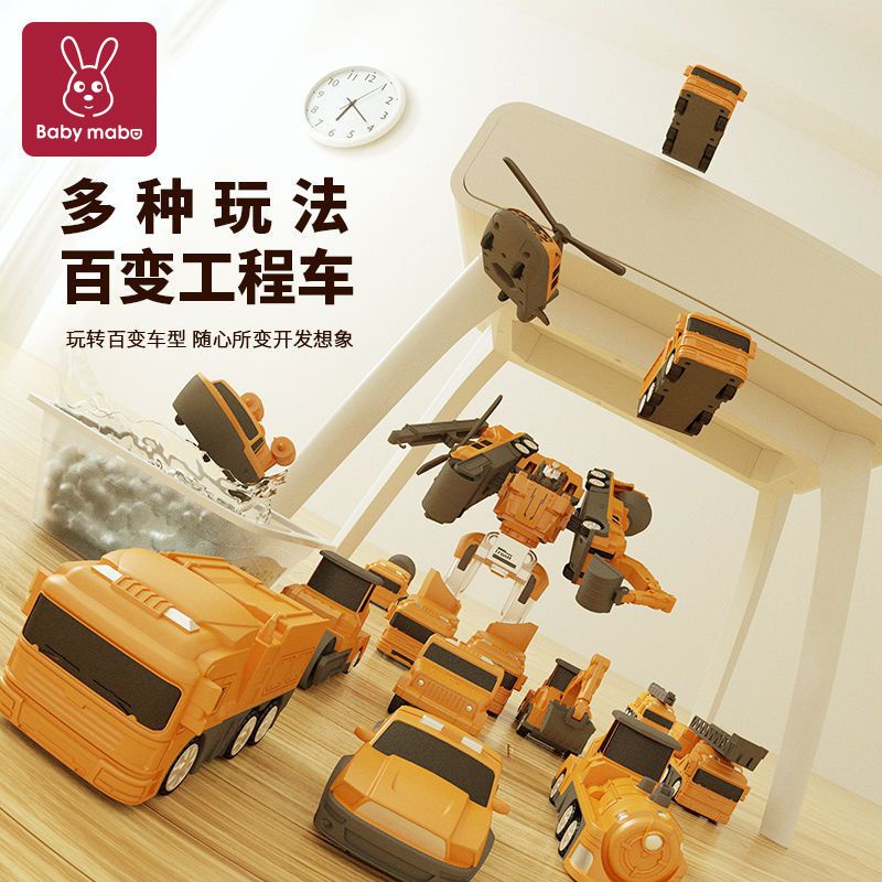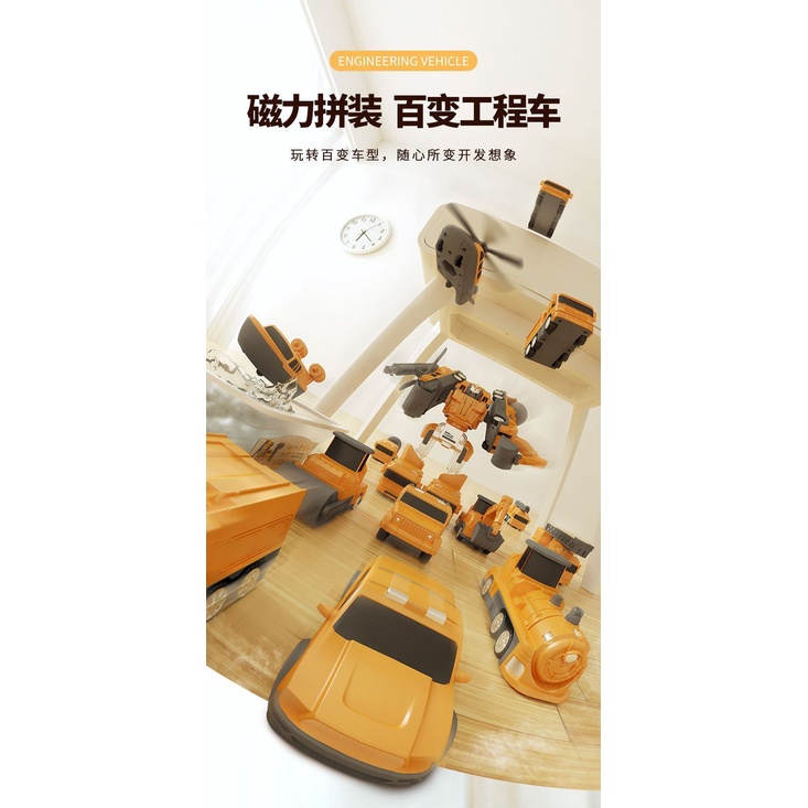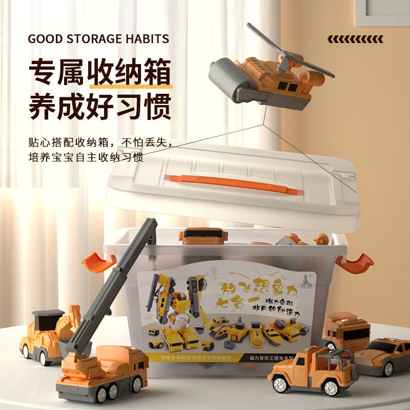 Get Gifts?Children's Magnetic Puzzle Building Blocks Fire Car3-6Years Old5Boy's Deformation Robot Toy Engineering Vehicl