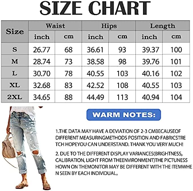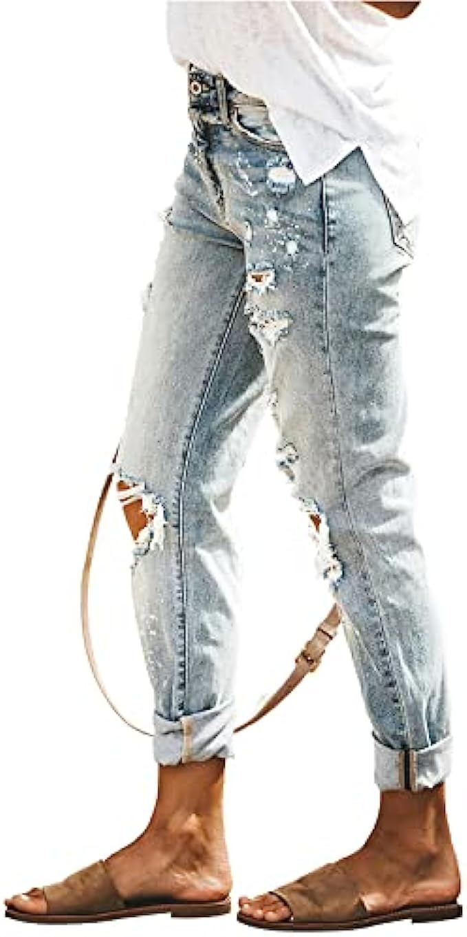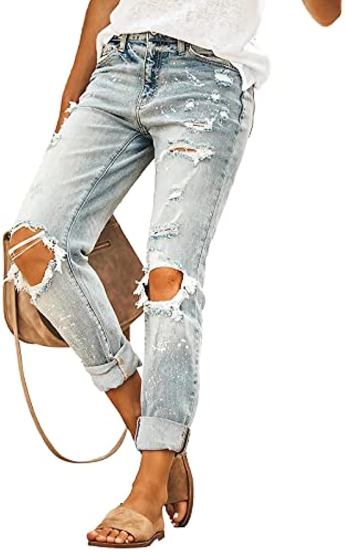 HETIPR Women's Ripped Boyfriend Jeans Mid Rise Loose Fit Distressed Stretchy Denim Pants
