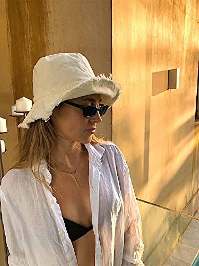 HZEYN Bucket Hats for Women Wide Brim Summer Travel Packable Cotton Bucket Beach Sun Hat UPF 50+