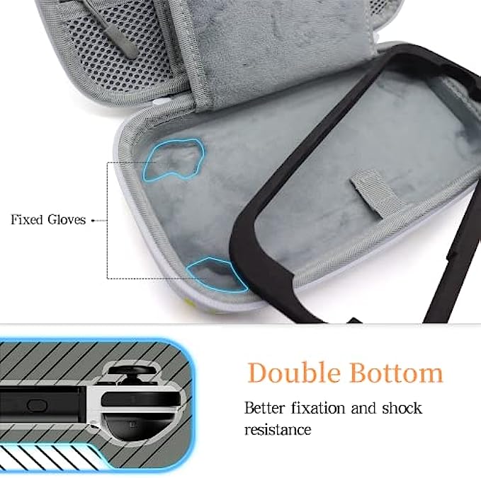 Island element design, a warm memory for AC fans. Also an ideal gift for family or friends, make them smile and make yourself happy. Specific design and perfect fit with all Switch familty(Switch / Switch Oled / Switch Lite). Two flaps on the middle can hold up to 20 game cards, it can also be super soft screen protectors. The bottom is designed with a double-layer hard shell, which perfectly protects the Switch from external shocks. All products are triple tested, plus we offer a five-year warranty.
