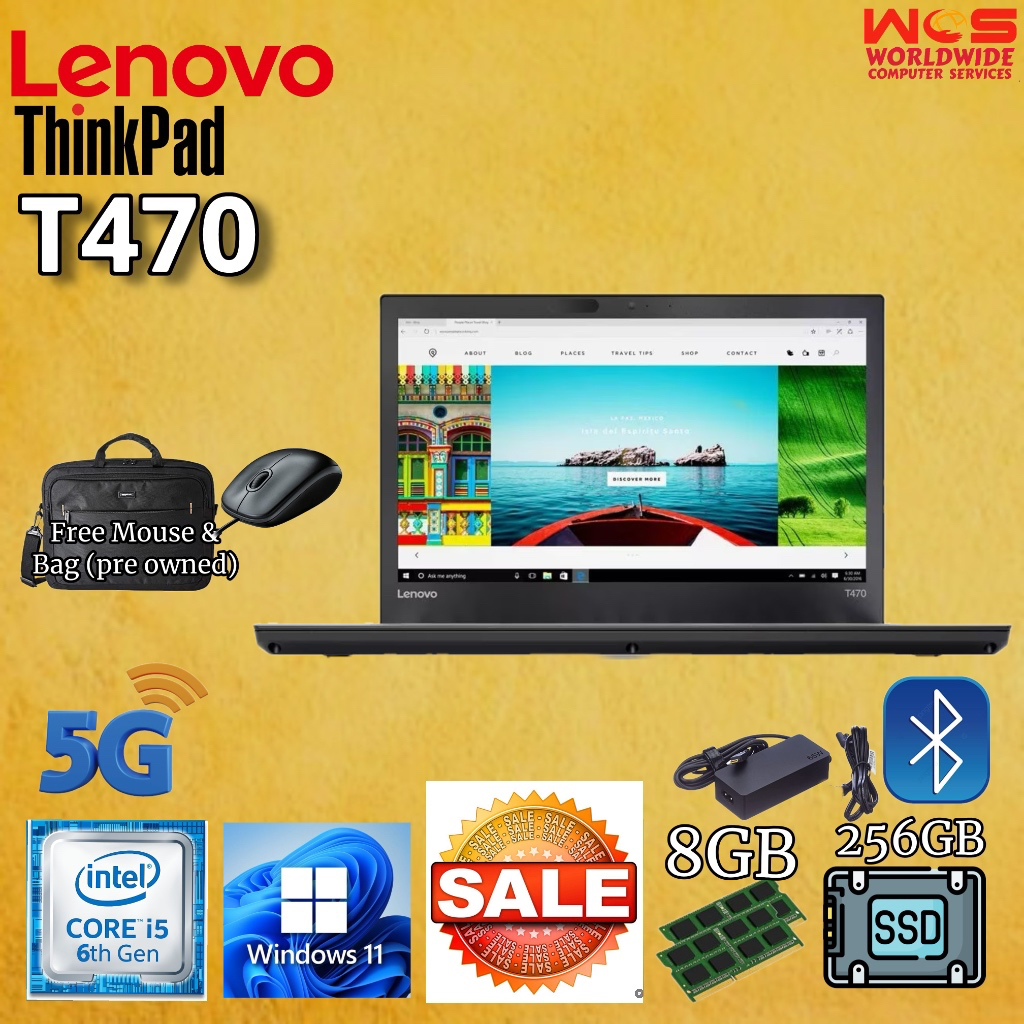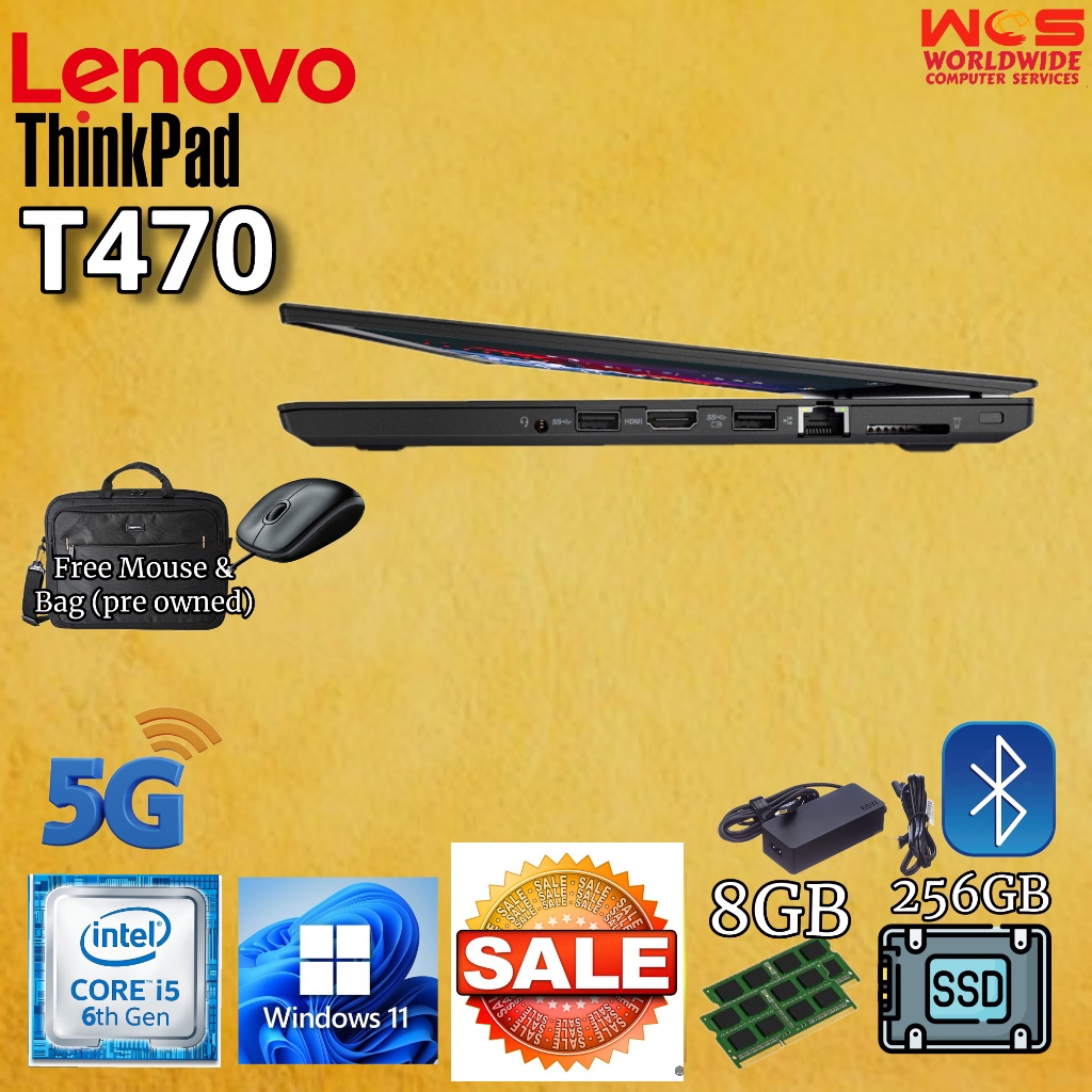 LENOVO T470 ThinkPad 14" HD display/ Intel Core i5 6th Gen/ 8GB RAM / 256GB SSD / WIN11 PRO /MS Office (Refurbished)
