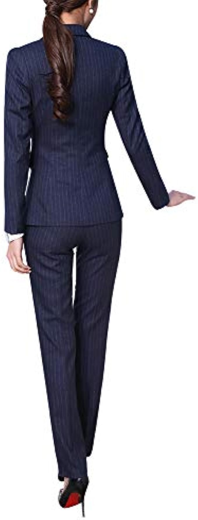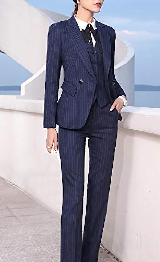 Polyester,Spandex Button closure 【Fabric】- Made of high quality 98%polyester & 2%spandex fabric.The lining is 100% polyester. 【Top】-Fashion notched lapel,and thick shoulder pads.Exquisite and stick double closure fasten the suit.Practical front pockets with covered placket.Simple long sleeve cuffs design,unique strip pattern design,waisted,regular and neat blazer hem,single-breasted button vest. 【Buttom】-Straight fit pants,stretch skinny trousers,exquisite pants loop,perfect rise with elastic waist,funcitoning slant pockets design.Rise your waistline,select the full color fabric handle delicate easycare. 【Suitable】-For office, work, holiday, dating, home, etc.Suitable for all occasions.You can pair it with white shirt.Different match gives you the different style. 【Washing Instruction】-Soak in cold water for 15 min, then washing with normal detergent . The temperature of the lotion should not exceed 45 °C. After washing, ventilate and dry, do not expose to the sun.