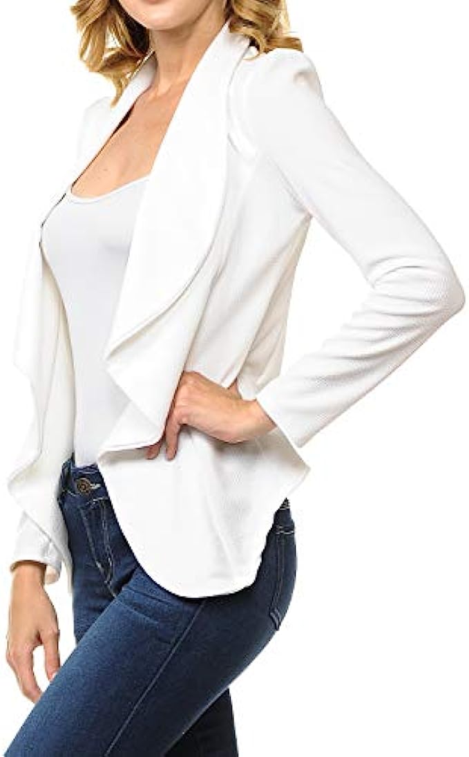 96% Polyester, 4% Spandex Pull On closure Classic Long Sleeve Classic Draped Open Front Lightweight Blazer Featuring with Long sleeve, Open Front, Drape, and Lightweight Must have this warm and cozy blazer for the season. Great for casual daily wear or sports outdoor leisure. Plus sizes available Please check the size chart provided from us to ensure your order Color disclaimer: Due to monitor settings and monitor pixel definition, we cannot guarantee the color that you see will be exact from the actual color of the product