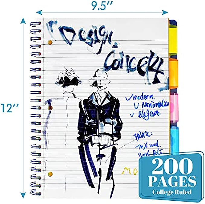 HEAVY DUTY 5 SUBJECT NOTEBOOKS : torn out paper size: 8.1" x 11.7"(A4), 3 holed punched. Large overall size of 9.5" x 12". Strong Twin-Wire Binding keeps pieces of paper securely fastened organized and provides a flat writing surface.