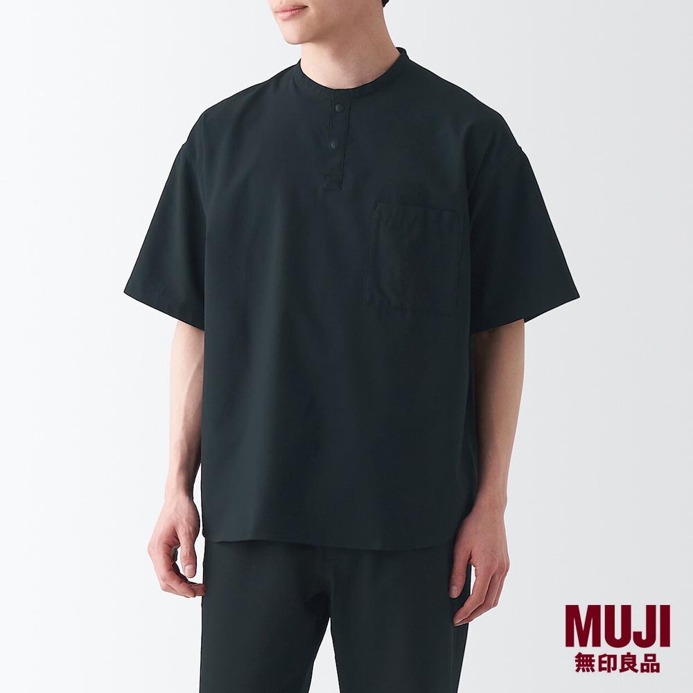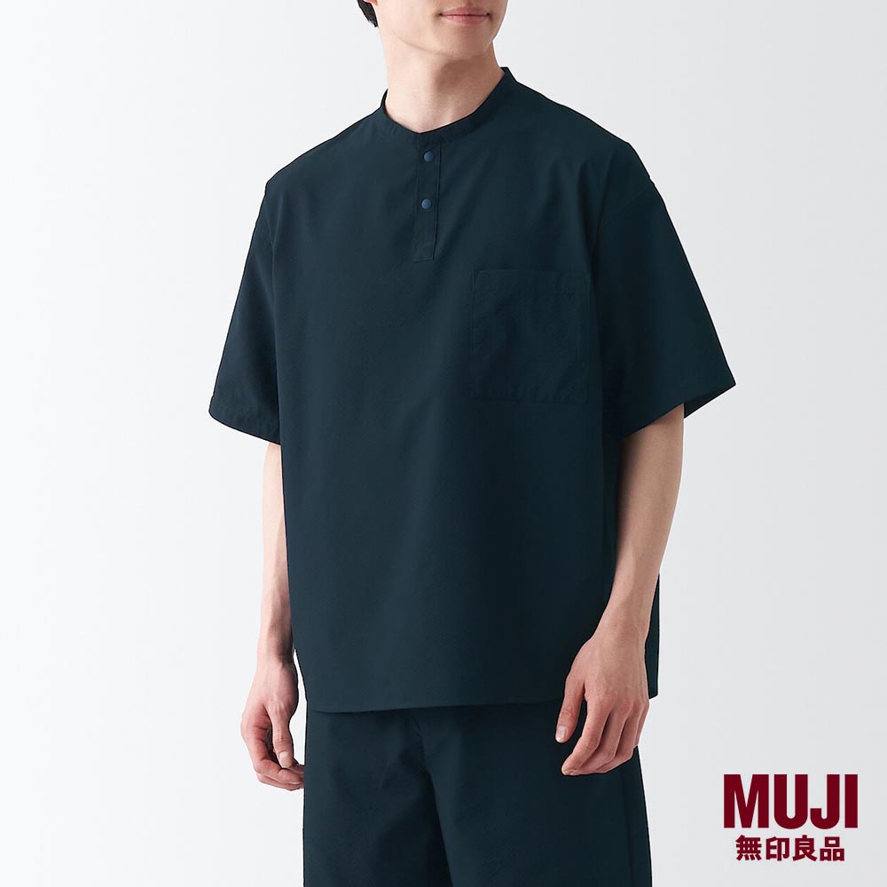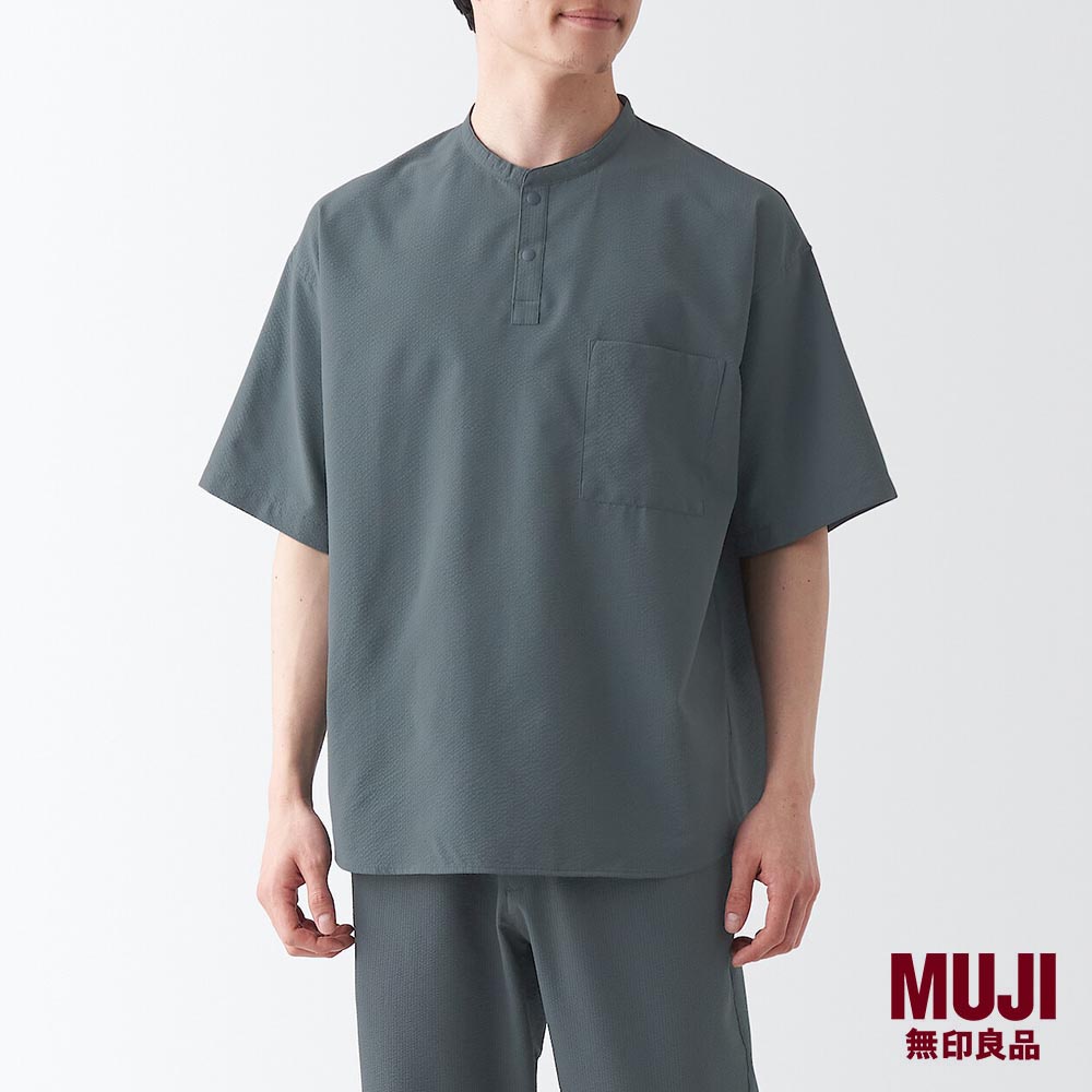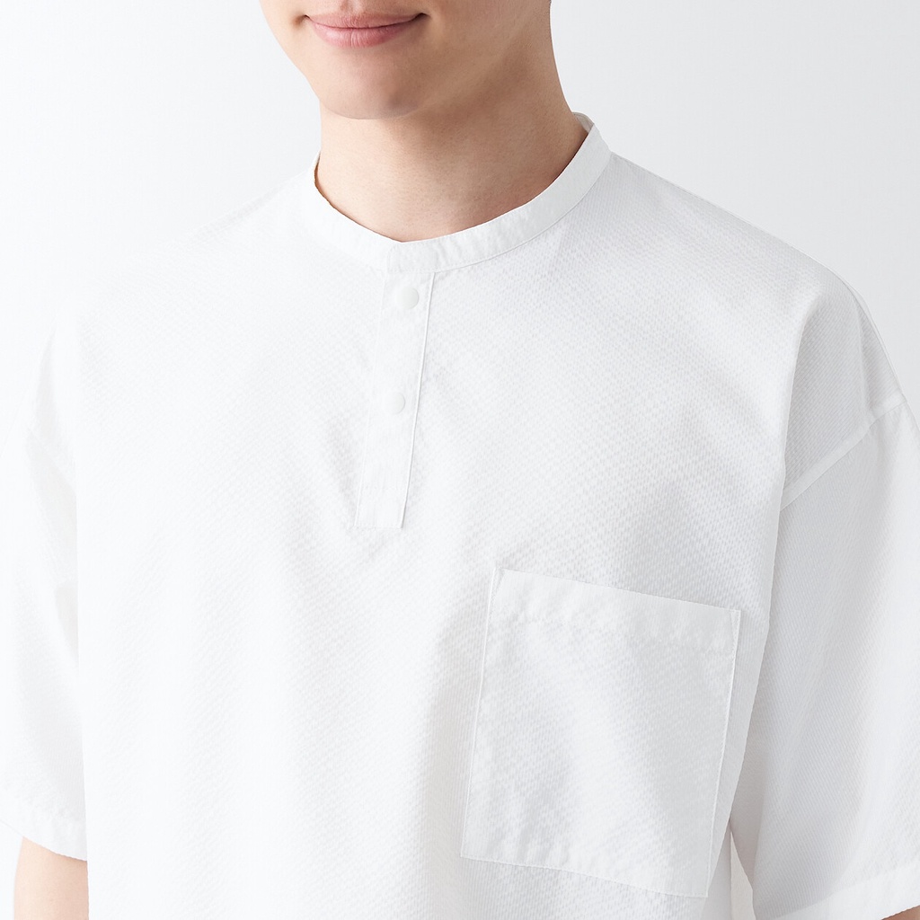 MUJI Men Seersucker Henry Neck T-Shirt