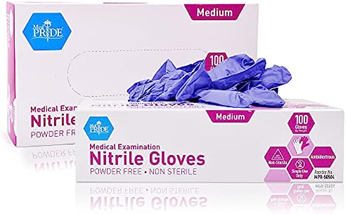 MedPride Powder-Free Nitrile Exam Gloves, Medium, Box/100