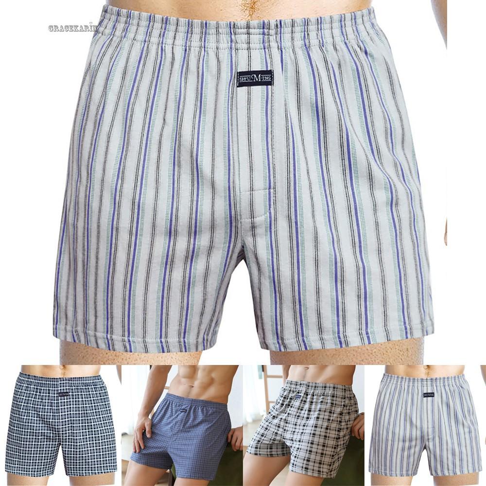 Men's Casual Loose Style Plaid Wide Leg Cotton Boxer Short Home Wear