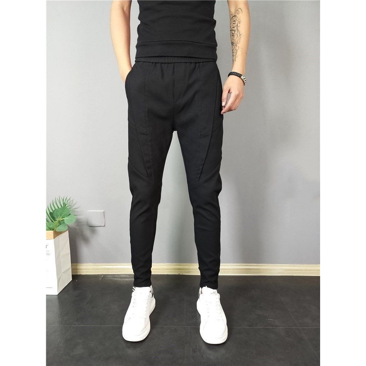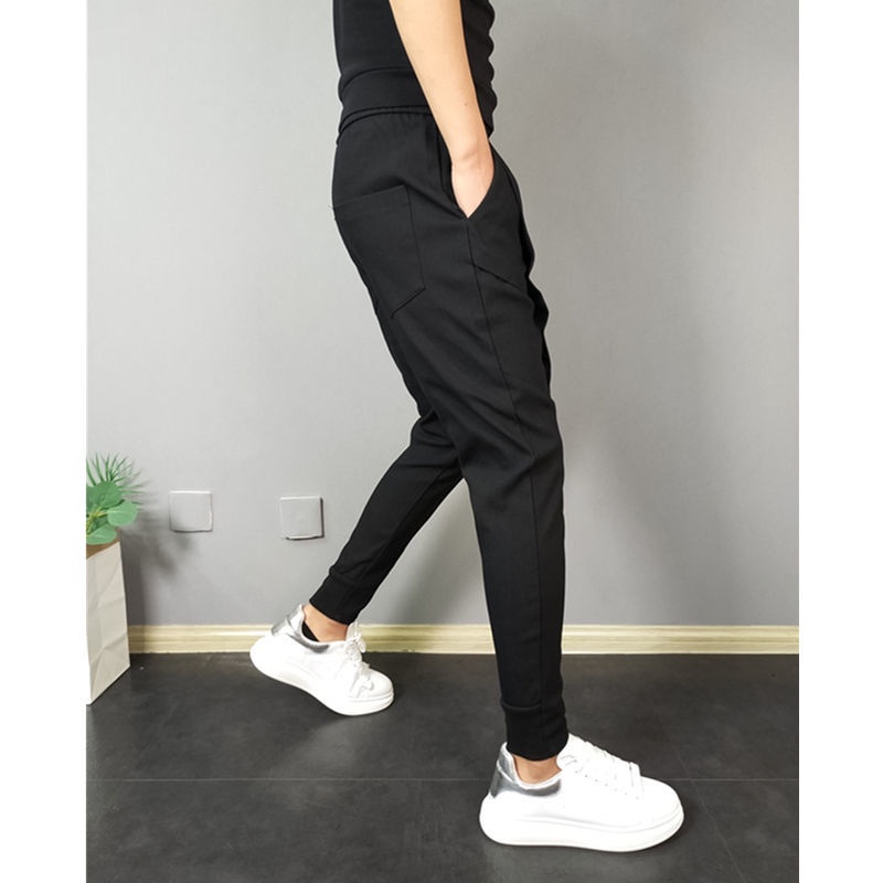 Men's Korean Style Solid Color Jogging Pant Man Slim Fit Drawstring Casual Ankle Pants
