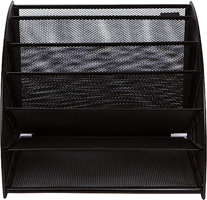 Mesh Office Organizer for Desk - Fan Shaped Desktop Organizer with 6 Compartments for Filing Paper, Bills, Letters. Desk File Organizer for Work, School, Office, Waiting Room, Classroom, and More