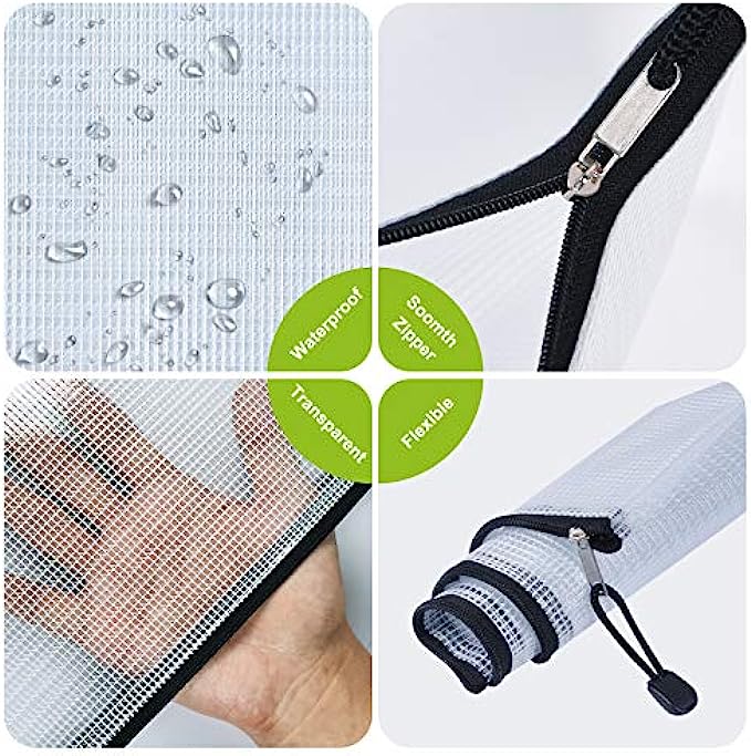 Mesh Zipper Pouch, 6PCS Waterproof Plastic Mesh ZipperBag, A4 Size Tear-Resistant Document Pouch, Extra Large Zip File Bags, for School Office Supplies Home Travel Storage(13.5×9.5 Inch)