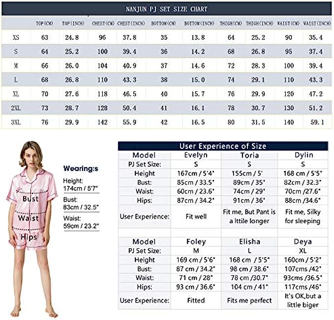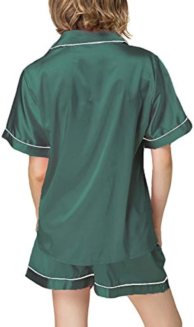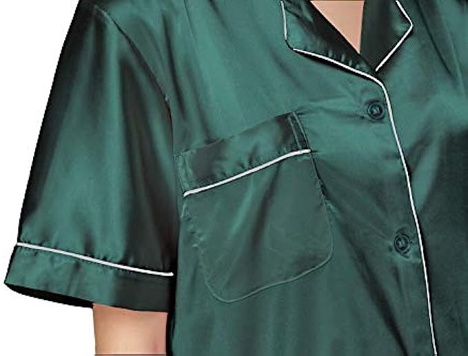 NANJUN Women's Silky Satin Pajamas Sleepwear Short and Long Button-Down Pj Set