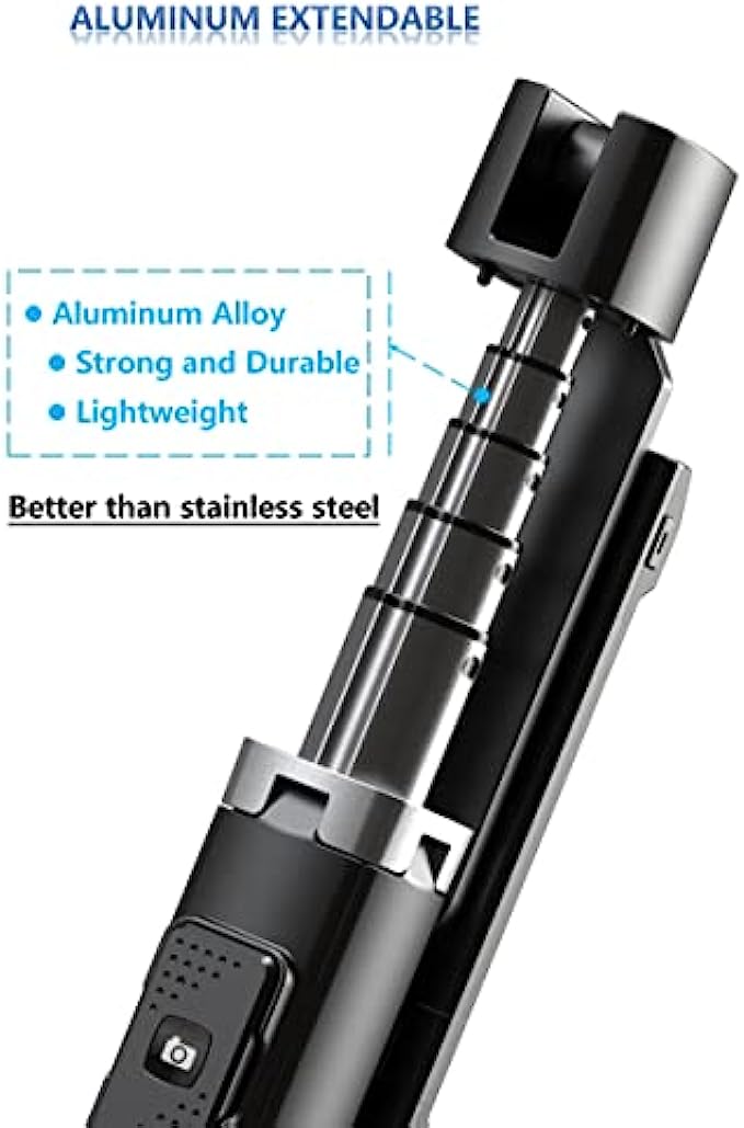 [Extendable & Foldable Mini Tripod]:Extendable length at 40" is very suitable.The tripod is made of Aluminium and Plastic,So it's lightweight and easy to carry.It is a very useful tripod for cell phone.