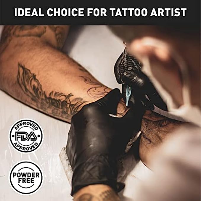 PROPER SIZE MATTERS - Vinyl disposable gloves are less form-fitting and elastic than latex or nitrile gloves, but more economical. Please refer to the size chart to find your own size. One-Size-Up is recommended if you are lingering between two sizes. Tight-fitting may cause gloves run into rips and tears. ENHANCED HAND PROTECTION - Crafted with 5 mil thick food grade high quality Polyvinyl Chloride (PVC). Provide good performance when your works encounter with dirty, dusty. More durable and convenient. COMFY FOR ALL - Smooth texture ensures tactile sensitivity to feel fine parts. Able to operate mobile phone while wearing gloves. Packaged 50 Black vinyl disposable gloves per box. Come in small, medium, large and extra-large sizes, suitable for both men and women. SAFE CHOICE - General purpose latex-free and powder-free disposable gloves are perfect for those who are allergic to the latex, and do not have a powder coating inside the glove, reducing the risk of allergic reactions and contamination. HIGHLY VERSATILE - Perfect for cooking, food handling, BBQ, gardening, cleaning, hair coloring etc. Suit for household and commercial situations like kitchen, laboratory, restaurants, public service, beauty hair salon, veterinary, and more.