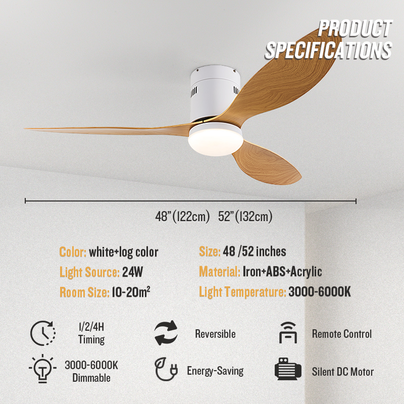 Oulianlan Ceiling Fan With Light DC Motor Ceiling Fan 48"/52" Tri-Color LED Light Remote Control Ceiling Light 5-YEAR-WARRANTY Tonyu