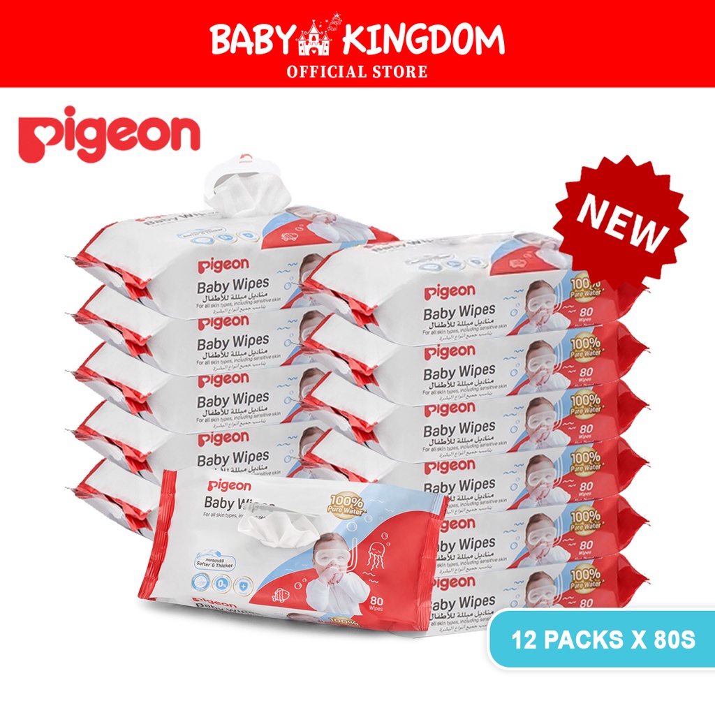 Pigeon Baby Wet Wipes 100% Pure Water 80pcs - Baby Kingdom