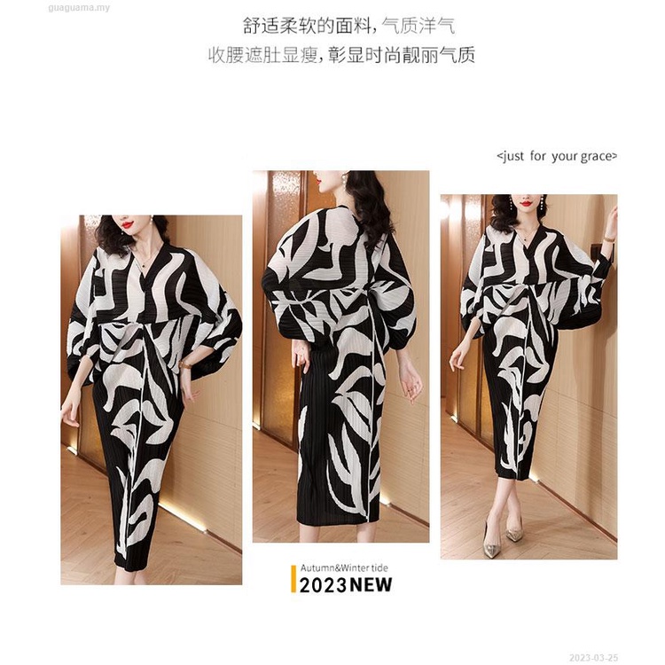 Pleated Dress 2022 Blue Print Slim Bat Sleeve Loose V-Neck Holiday Floral Dress - 2023-03-23