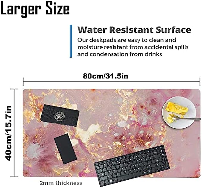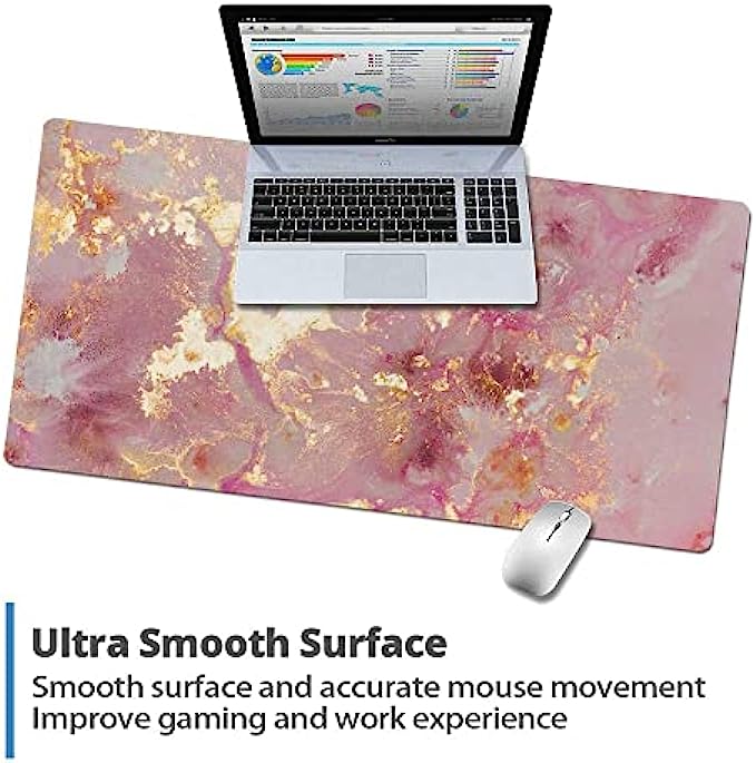 QIYI Large Mouse Pad, Cute Pink Desk Mat for Desktop, Women Girls PU Leather Waterproof Gaming Mousepad, Rose Gold Marble Computer PC Laptop Protector Writing Pads for School Office Home 31.5" x