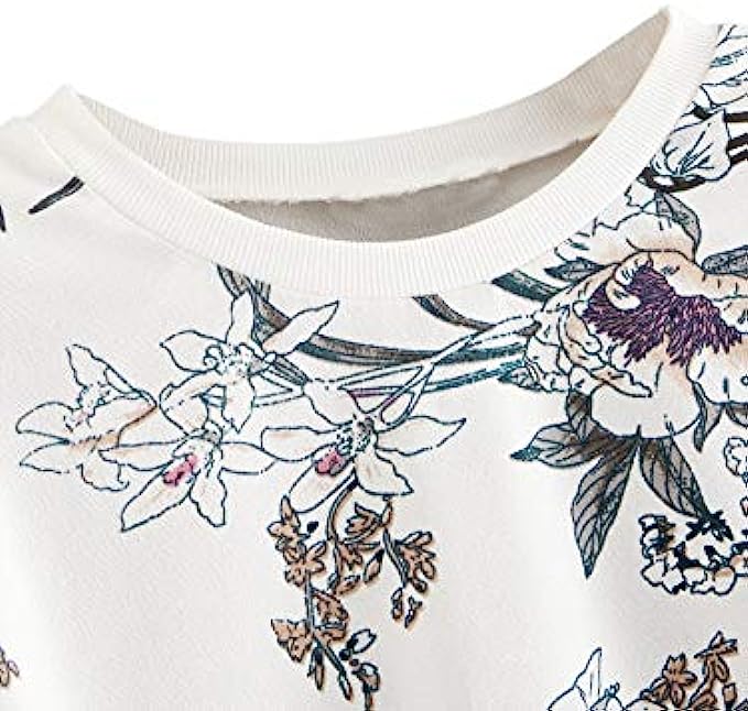 95% Polyester, 5% Spandex Pull On closure Fabric: Some stretch, breathable, lightweight, this sweatshirt make of soft material, when you dress up this sweatshirt, you will feel very comfortable no matter what you do Occasion: Suitable for spring, fall, vacation, casual outtings, school, home, work, office, leisure and daily wear Design: Plants print, raglan sleeve, round neck/crew neck, long sleeve sweatshirt for women. This sweatshirt has a simple design, but it's very fashionable and easy to match Style: Basic floral print sweatshirt to show your youthful and casual style, it is perfect to pair with jeans, skinny leggings and heels Size: Please refer to the size chart as below(not amazon size), Bust: XS-39.5", S-41.0", M-42.5", L-45.0", XL-47.0"