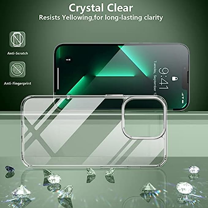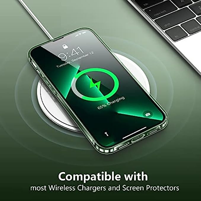 • [Crystal Clear,Non-yellowing & Support Wireless Charging] Germany Bayer materials and anti-oxidant coatings designed for iPhone 13 pro max case, don't react with ultraviolet, non-yellowing over time, provide long-lasting clarity to show original beauty of your iPhone.It absolutely supports wireless charging.