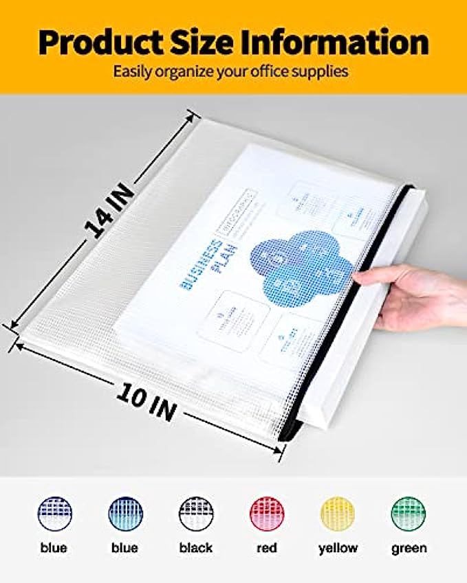 SUNEE Mesh Zipper Pouch 10x14 in (6 Colors, 24 Packs), Extra Large Water-Resistant Zip Bag for School Office Supplies, Puzzles & Games Organizing Storage
