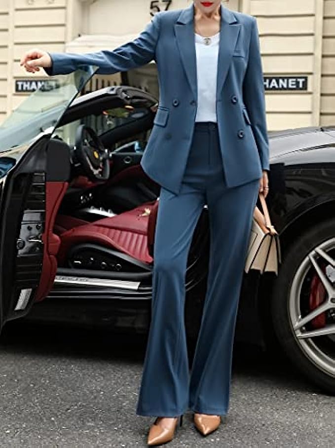 Polyester, spandex Imported Button closure Machine Wash ᴥFabric:Made of 80% polyester & 2% spandex & others,fabric blended with spandex for stretch and comfort. ᴥBlazers: Patchwork notched lapel,thick shoulder pads.Two buttons closure, and one detachable adjuatable belt to better fit different bodies,two practical flap pockets to carry small belongings. Long sleeves,regular and neat blazer hem. ᴥPants: Flared leg pants,stick button with zipper closure,belt loop design,functional slant pockets.