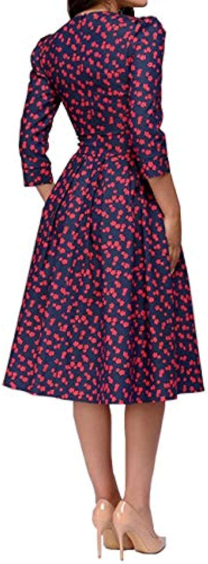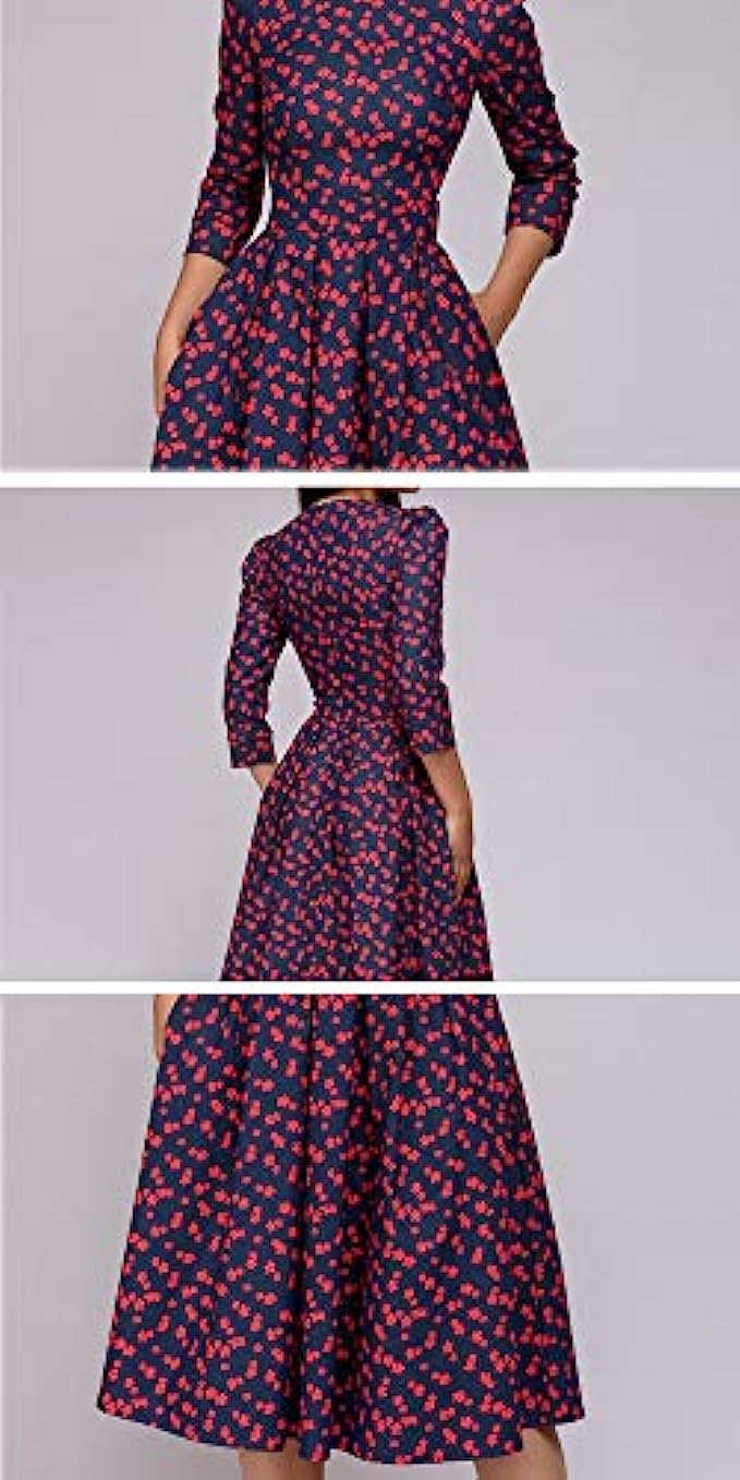 98% Polyester, 2% Spandex Imported Zipper closure Material:Polyester Features:Round Neck,Back Hidden Zipper Closure,Three Quarter Sleeve,Midi Knee Length,Floral Patchwork Dress. Perfect Wedding Guest Dress for Autumn,Winter and Early Spring Seasons. Occasion:Cocktail Party,Banquet,Wedding,Dating,Evening Dinner,Family Gathering,Daily Wear. ATTENTIONS:Before order,please carefully check the Size Chart we provided in the pictures(Not Amazon size chart).