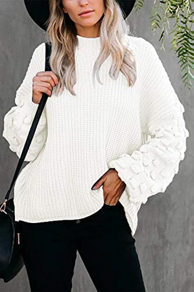 Sovoyontee Women's Cute Oversized Crewneck Loose Puff Sleeves Chunky Knit Pullover Sweater