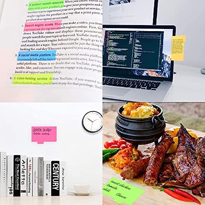 【Adhesives & Remove】The stick notes tabs are sticky, perfectly pasted on paper, walls, displays, bulletin boards,Removable you can take them off without ripping the paper.