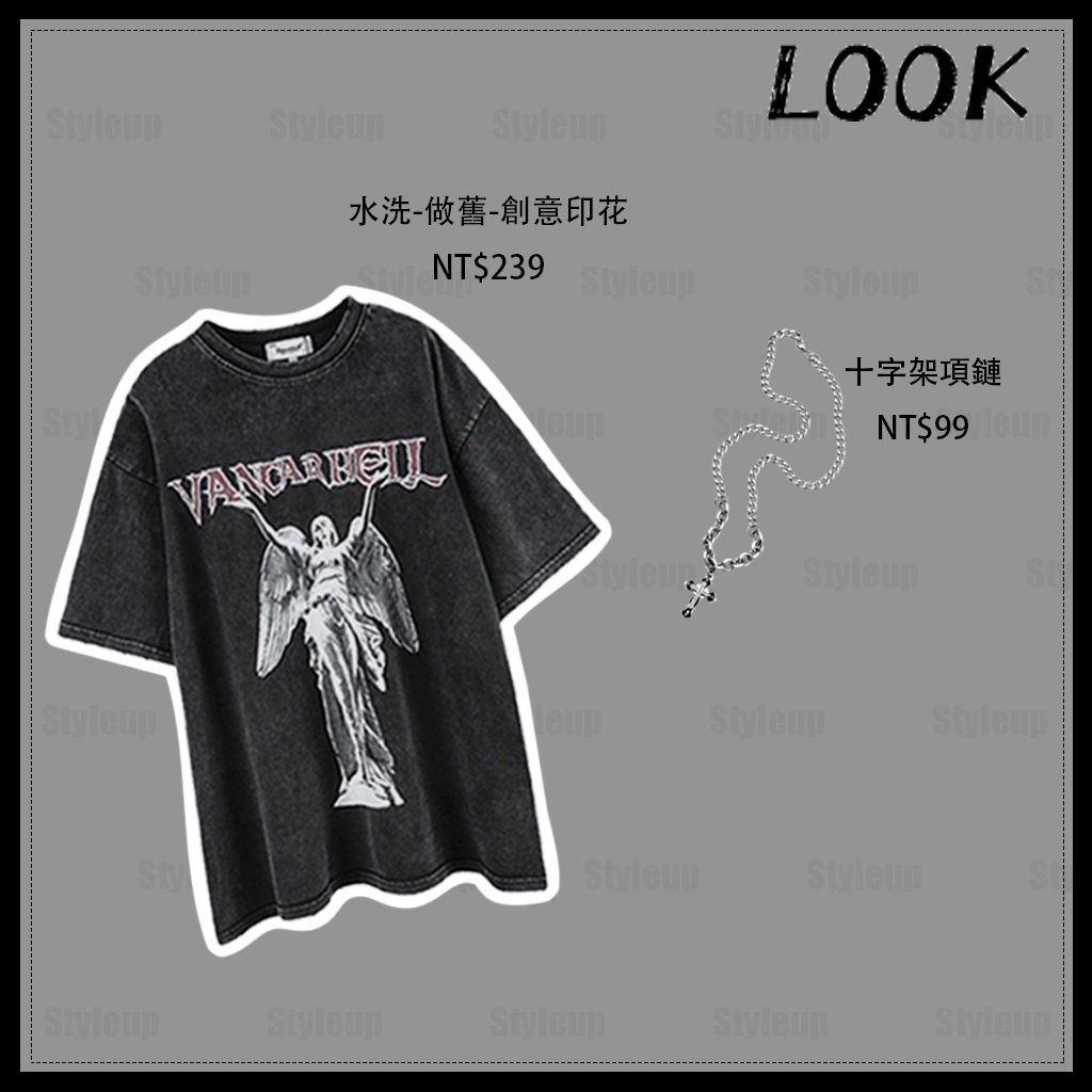 Style&Up 夏季新款 水洗做舊T恤 休閒寬鬆 運動短褲 套裝男 美式復古 短袖上衣 休閒短褲