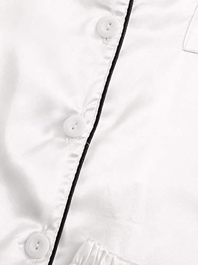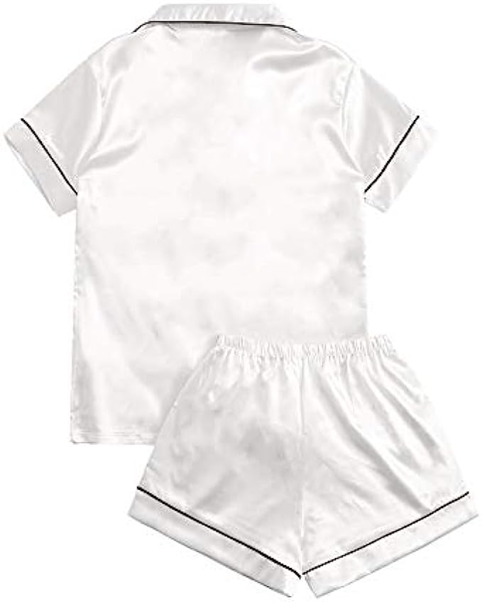 SweatyRocks Women's Short Sleeve Sleepwear Button Down Satin 2 Piece Pajama Set