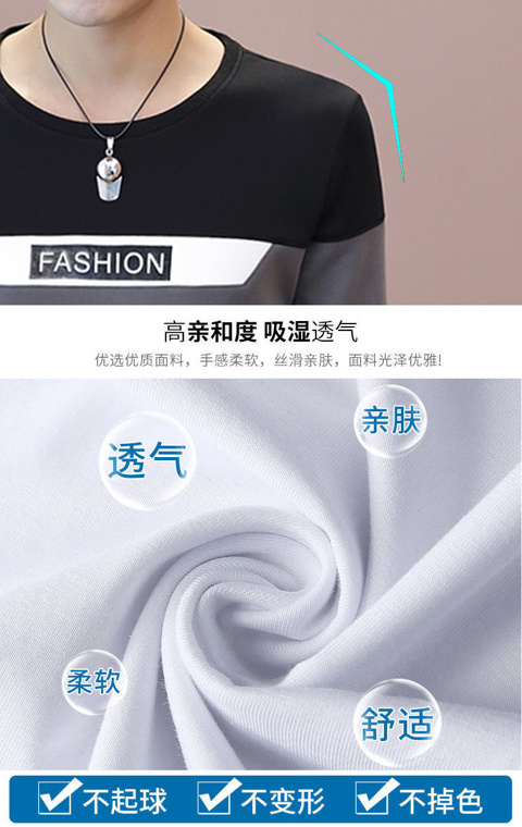T-shirt men's color matching Sweatshirt slim t-shirt men's Long Sleeve Top Black Red