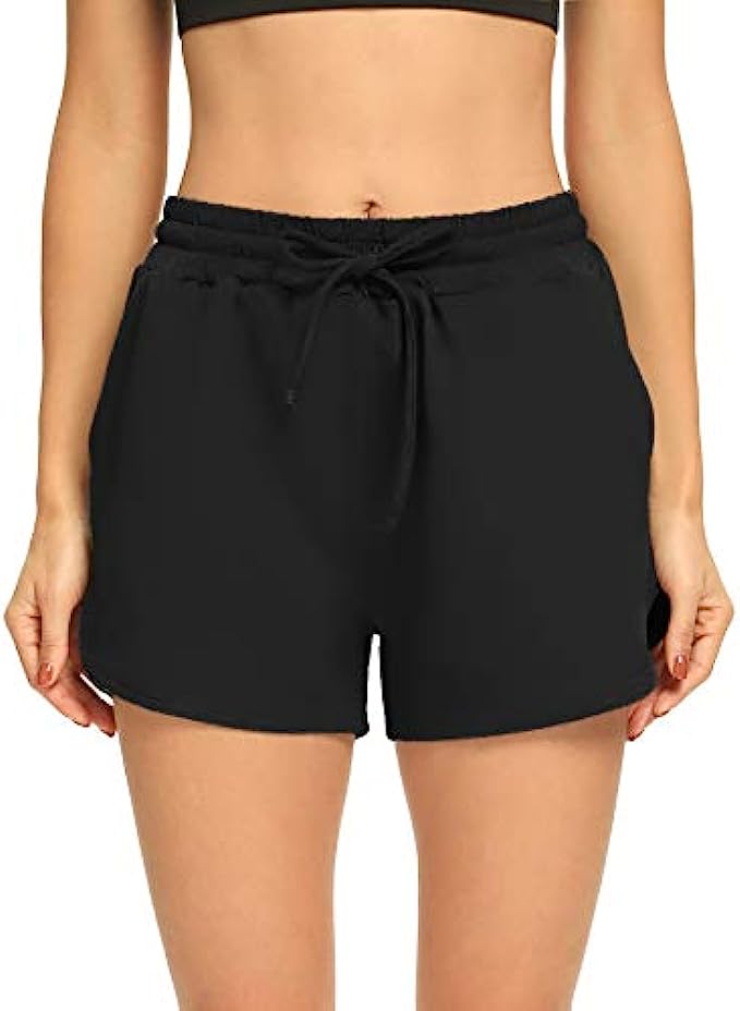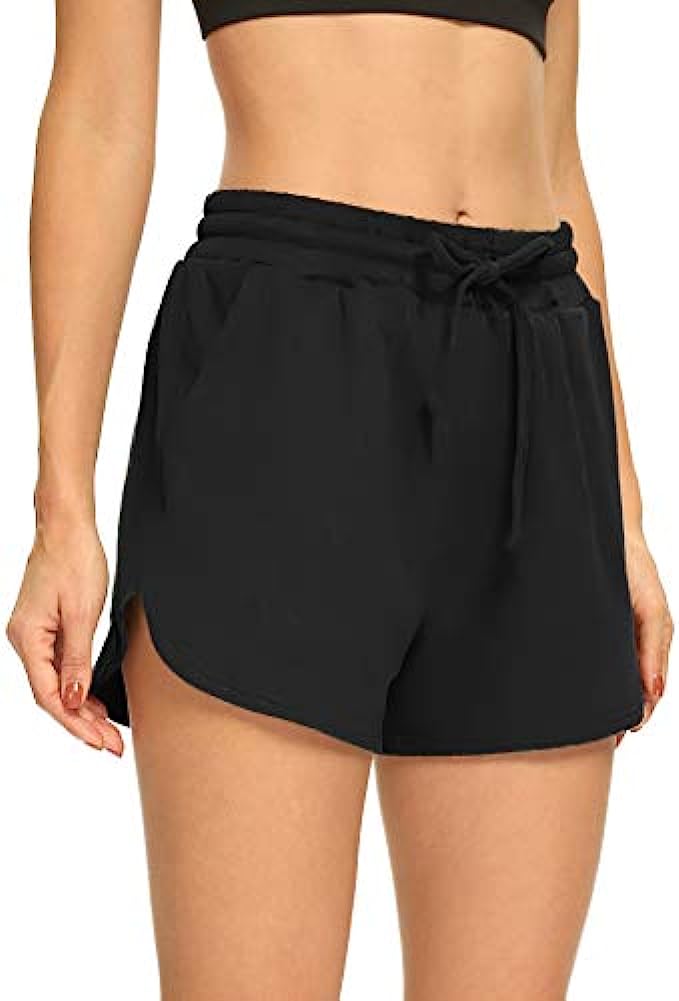 90% Polyester, 10% Spandex Drawstring closure Machine Wash Size Chart: S (Waist-24.80”, Length-12.24”, Inseam-2.95” ); M (Waist-26.77”, Length-12.58”, Inseam-2.95”); L (Waist-29.33”, Length-12.95”, Inseam-2.95” ); XL (Waist-31.88”, Length-13.30”, Inseam-2.95”) Material: 90% Polyester+10%Spandex. Butter soft feel like your legs surrounded by clouds. Lightweight but not thin, skin-friendly and highly durable, keep you comfortable while lounging or doing sports Two Pockets & Dolphin Hem: Elastic waistband do custom fit, 3 inch length just right won't riding up. Two deep side pockets could stash the essentials. Split dolphin hem leaves large room for the booty, loose enough to be super comfy and more better move. Perfect summer shorts for any occasions and everyday wear Features: Elastic waist, drawstring, dolphin hem, split bottom, loose fitting, wide leg, 3 inch length, cute, classic sport shorts, comfy pajama shorts, womens sweat shorts, workout shorts for women, summer sweatpants shorts, loose yoga shorts, running shorts with pockets Occasion: These womens casual shorts will be a favorite in your loungewear wardrobe, you can wear THANTH athletic shorts for doing yoga, pilates, running, walking, hiking, biking, workout, exercise, gym fitness, travel, shopping or lounging at home. A lounge shorts you will need in this summer