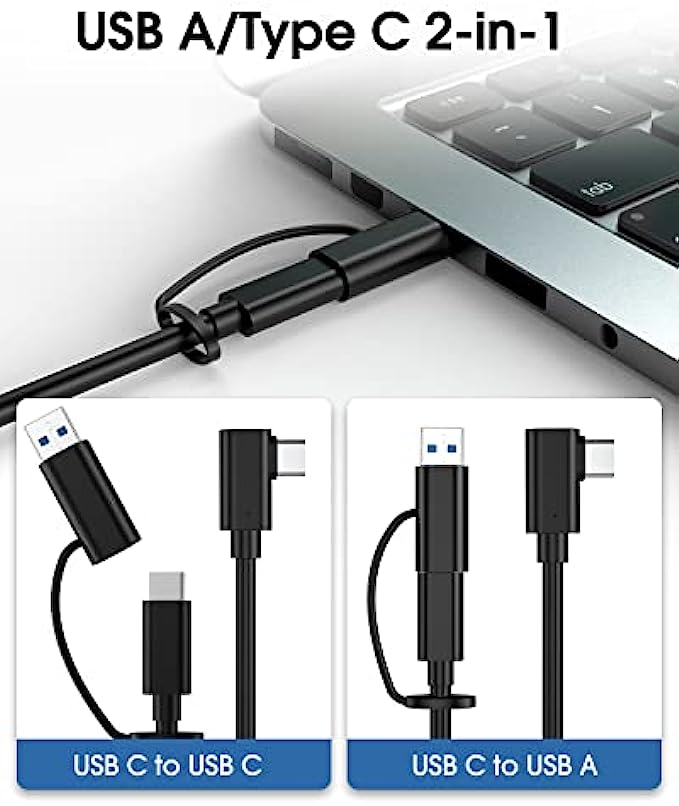 High-Speed Data Transfer: Oculus Quest 2/1 link cable provides up to 5Gb per second transfer speed. The smart chip's quick and stable data synchronization and continuous current bring you the highest rendering quality of your PC and a smooth gaming experience. An additional USB-A port enables compatibility with older PCs as well.