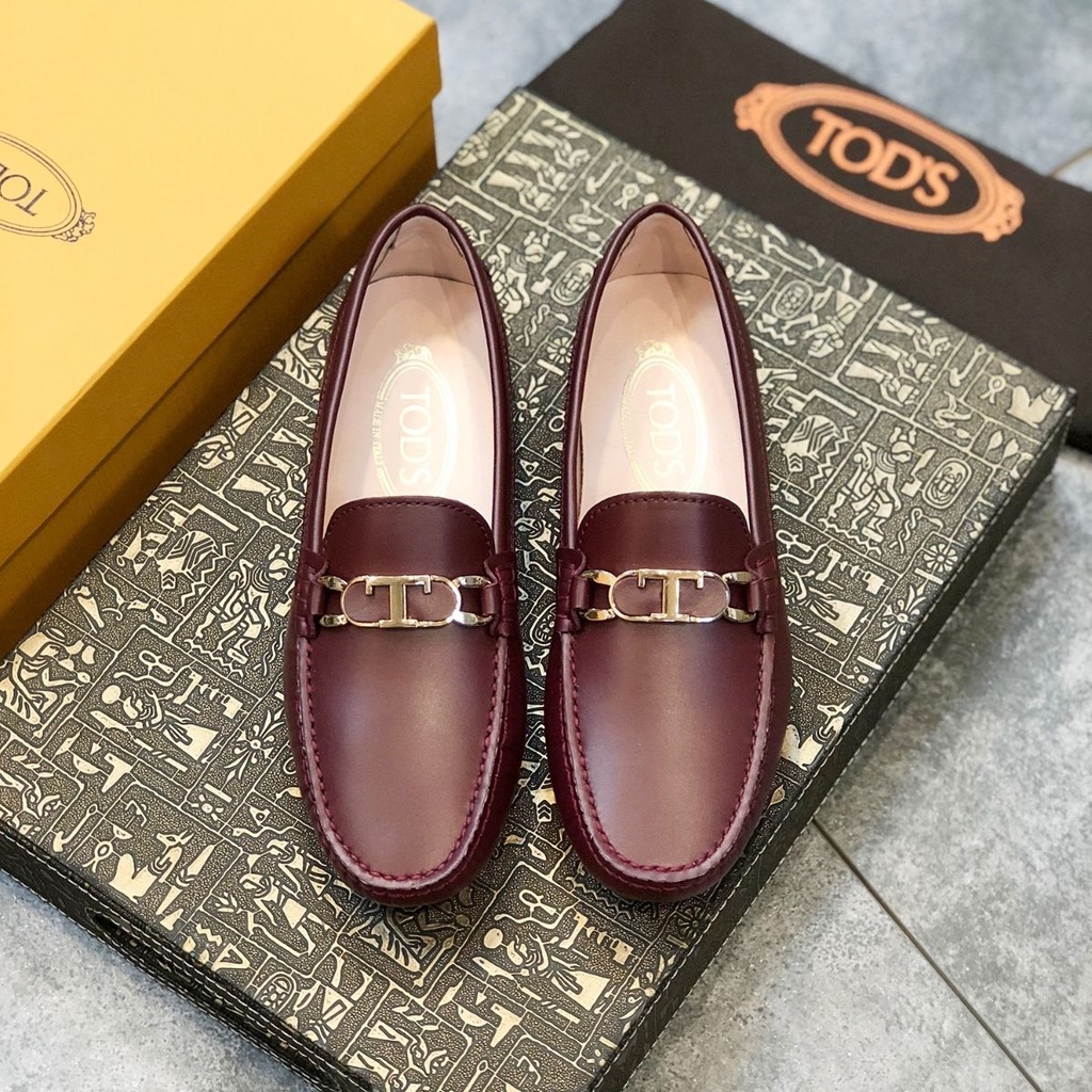 The Latest Style Tods Peas Shoes Women's Tod's Genuine Leather Cowhide Slip-On Casual Loafers Cover Foot Soft Sole MN553
