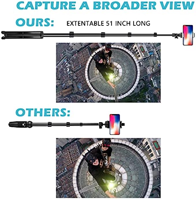 Extra Long For More Possibility - Extendable From 17.0 Inches To 60.0 Inches (Longer Than Average), Combined With 180° Neck Rotation And 360° Head Rotation To Find Your Best And Beautiful Shooting Angle, You Can Now Cram In More People Or Background To Take The Most Satisfying Selfies And Capture Awesome Selfies Or Other Photos From Formerly Impossible Angles