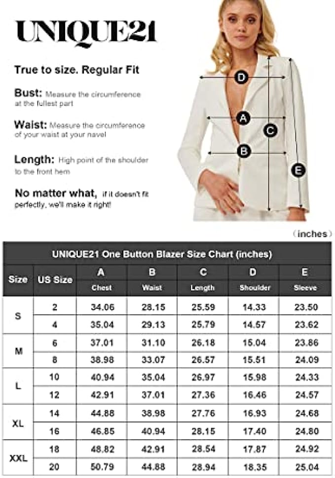 UNIQUE 21 Women's One Button Boyfriend Blazer for Work Casual - Ladies Jackets Outfits Suits for Work