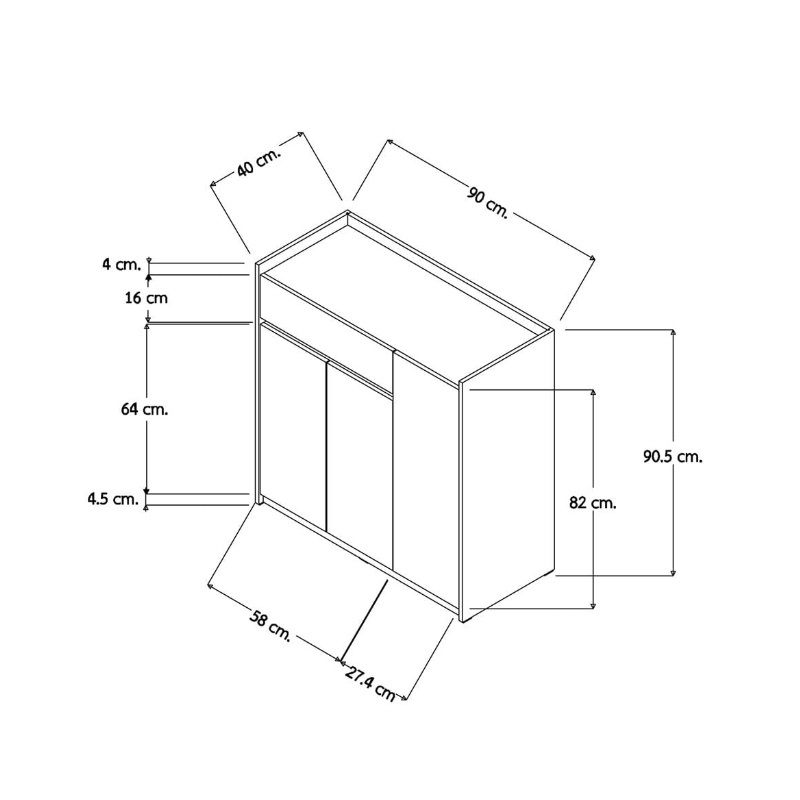 VHIVE Harper 90cm Shoe Cabinet (Oak Drawer Storage Melamine Cupboard)