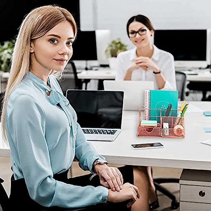 STAY ORGANIZED IN STYLE: Whether you commute to an office or work from home, these rose gold desk accessories will keep you organized while also looking great in any work space. And you can easily store business cards, notepads, pens, charging cable and other office supplies.