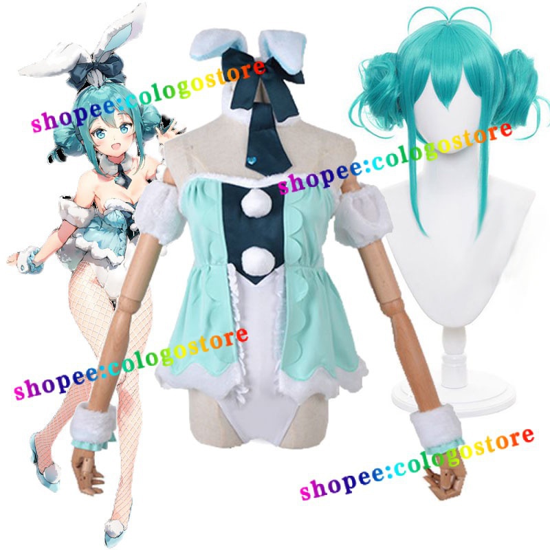 Virtual Idol Miku Cosplay Costume Cute Bunny Girl Bodysuit Female Sexy Tights and Accessories Women's Wig Headgear