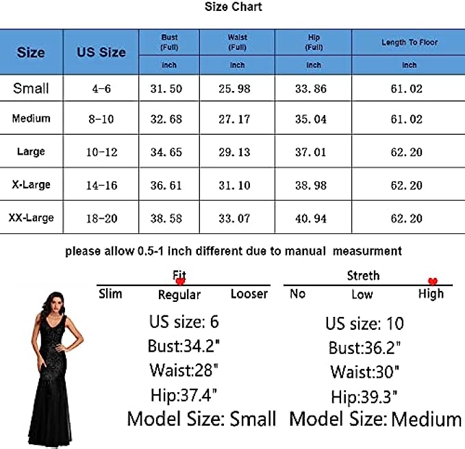 • Size of Ladies Evening Long Dress: Length: 61-62 Inch; US SIZE:S:4-6;M:8-10;L:10-12;XL:14-16;2XL:18-20