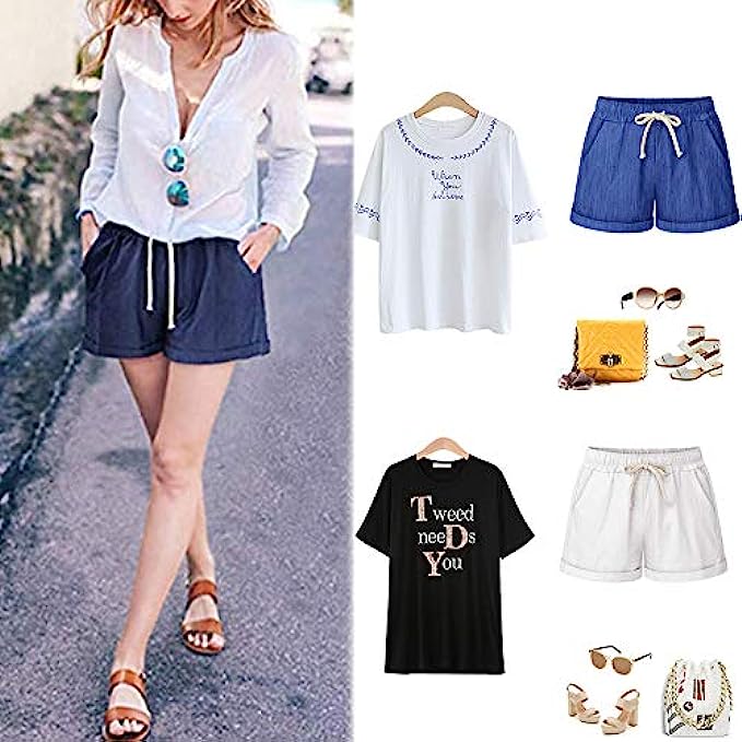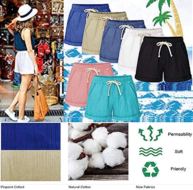 100% Cotton Imported Drawstring closure Machine Wash Women's Casual Shorts:Soft, comfortable, healthy and breathable fabric.Two side slant pockets are convenient for you to carry the small things,convenient and practical. Summer Drawstring Shorts:Mid/High-rise elastic waistband for stretchy fit. Adjustable waist drawstring offers added comfort. 2 front pockets with magic buckle, 2 back pockets. Casual Comfy Beach Shorts:Classic casual shorts can pair with tank top or any t-shirts,flats,pump,sandals,sneakers,slippers,make you comfortable and stylish ,these shorts are summer a wardrobe staple.