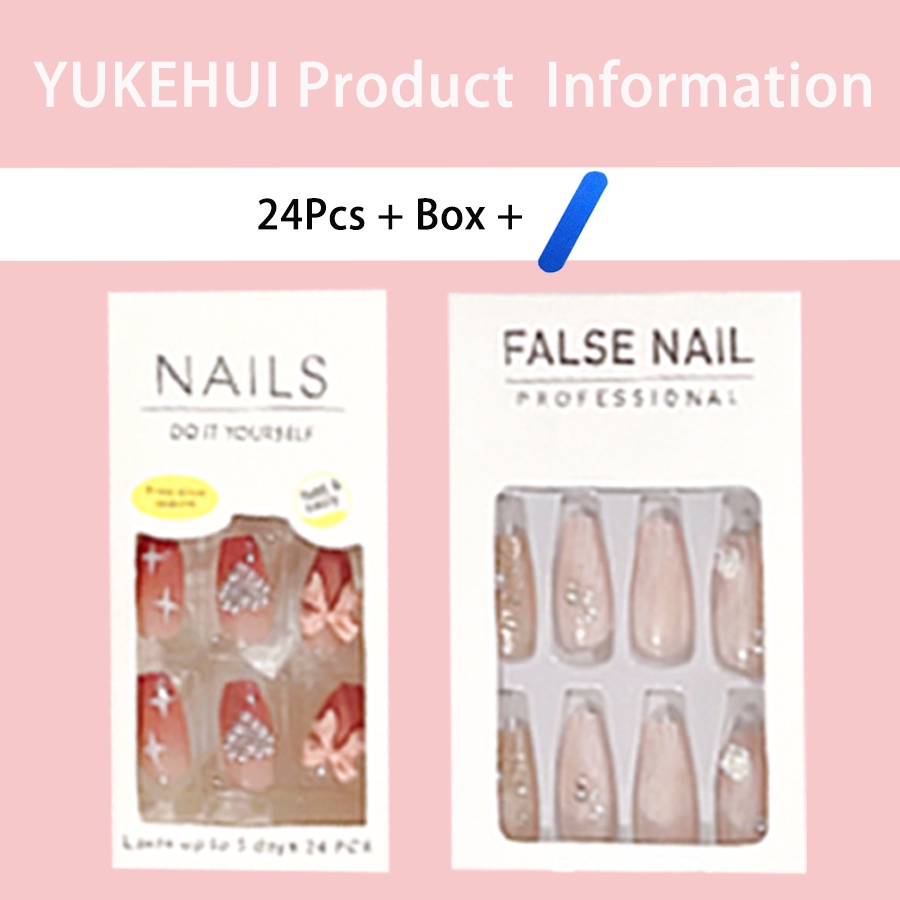 YKHMYB 24 pcs set with glue nails fake nails nail sticker long nail glue art false nails french nail fake nails with design manicure press on nails 假指甲 指甲貼 fake nails press on short nail nail press o