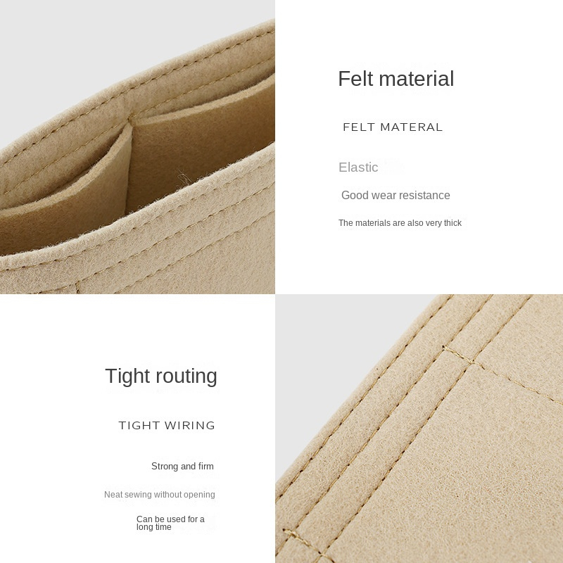 Color: beige, beige Material: felt True to the description: ok The form lining is ok, put it in a Longchamp bag and then stand in a beautiful form, and divided into many compartments for easy storage
