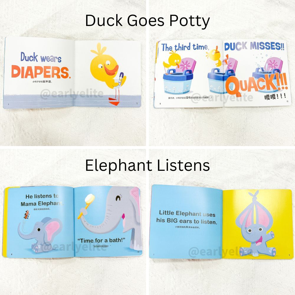 Suitability:3 yr old kids love the book. The words are huge and books contain lots of picture images and simple easy words. Contains English and chinese languages.