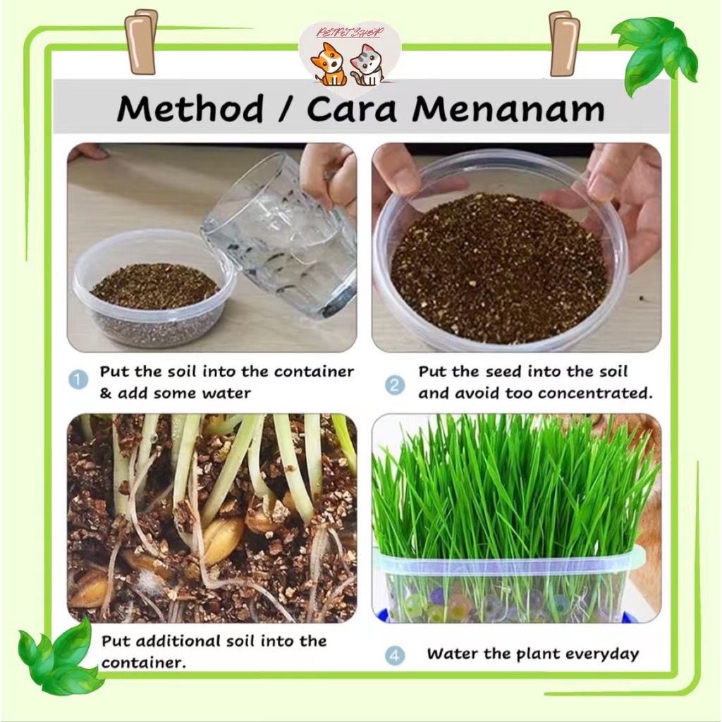 Cat Grass Vitamin Minerals and Fibers Wheat Grass - Biji Benih Rumput Kucing (Improve Mental Stability & Immunes System)