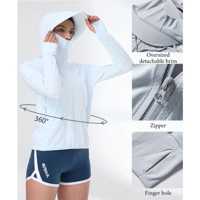 Pleased with the colour and the thin material. Intrique by the zipperable brim; very practical and useful. Hope it is authentic 50+ UPF protection as labelled on bottom left corner.